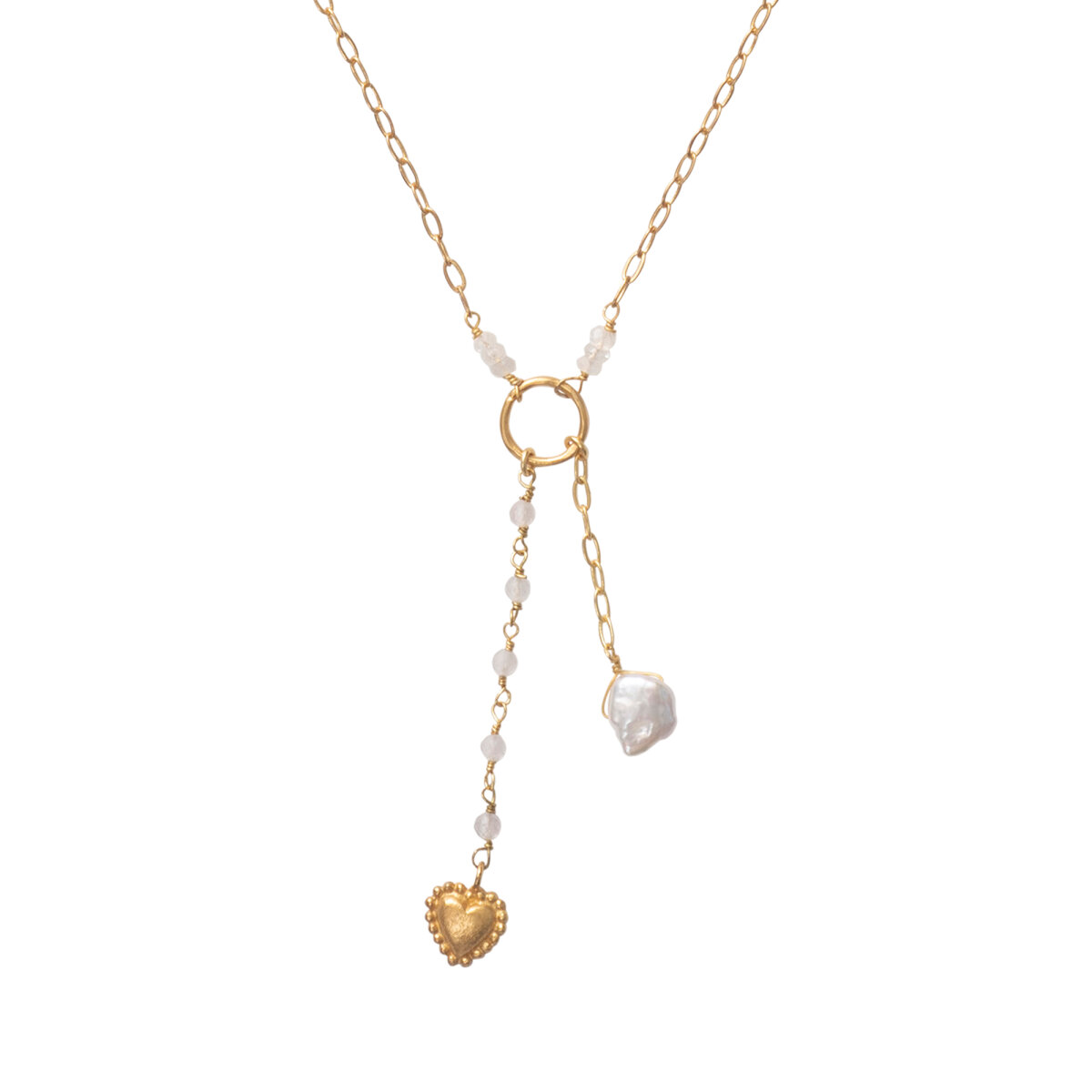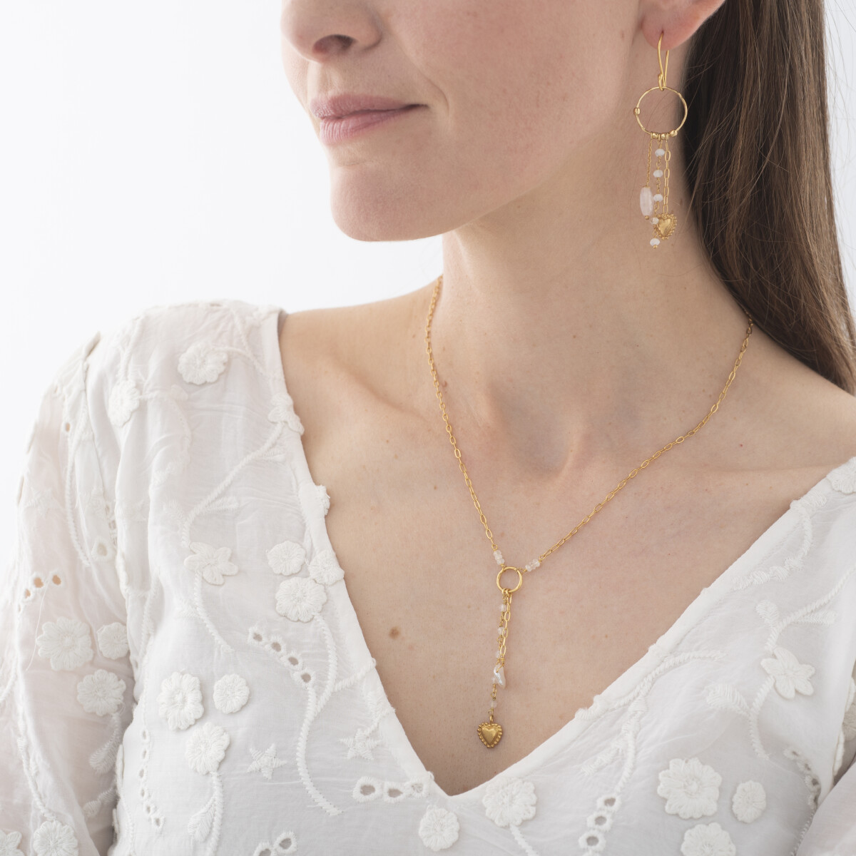 Die Optimist Mondstein Rosenquarz Vergoldet Halskette von A Beautiful Story ist aus vergoldetem Messing gefertigt, hat kleine Mondstein- und Rosenquarz-Edelsteine und einen Anhänger mit Herzsymbol. Die Länge der Halskette beträgt 46-52 Zentimeter.Der Mondstein folgt dem Zyklus des Mondes und erinnert Dich an Deine weibliche Weisheit und Intuition. Mit dem Mondstein feierst Du einen neuen Anfang. Und Du spürst die Schönheit dieses Moments.Der Rosenquarz ist der Stein der Liebe. Rosenquarz löst Herausforderungen mit Sanftheit und Mitgefühl. Für alle um Dich herum, aber vor allem für Dich selbst. Denn wahre Liebe beginnt in Deinem eigenen Herzen.